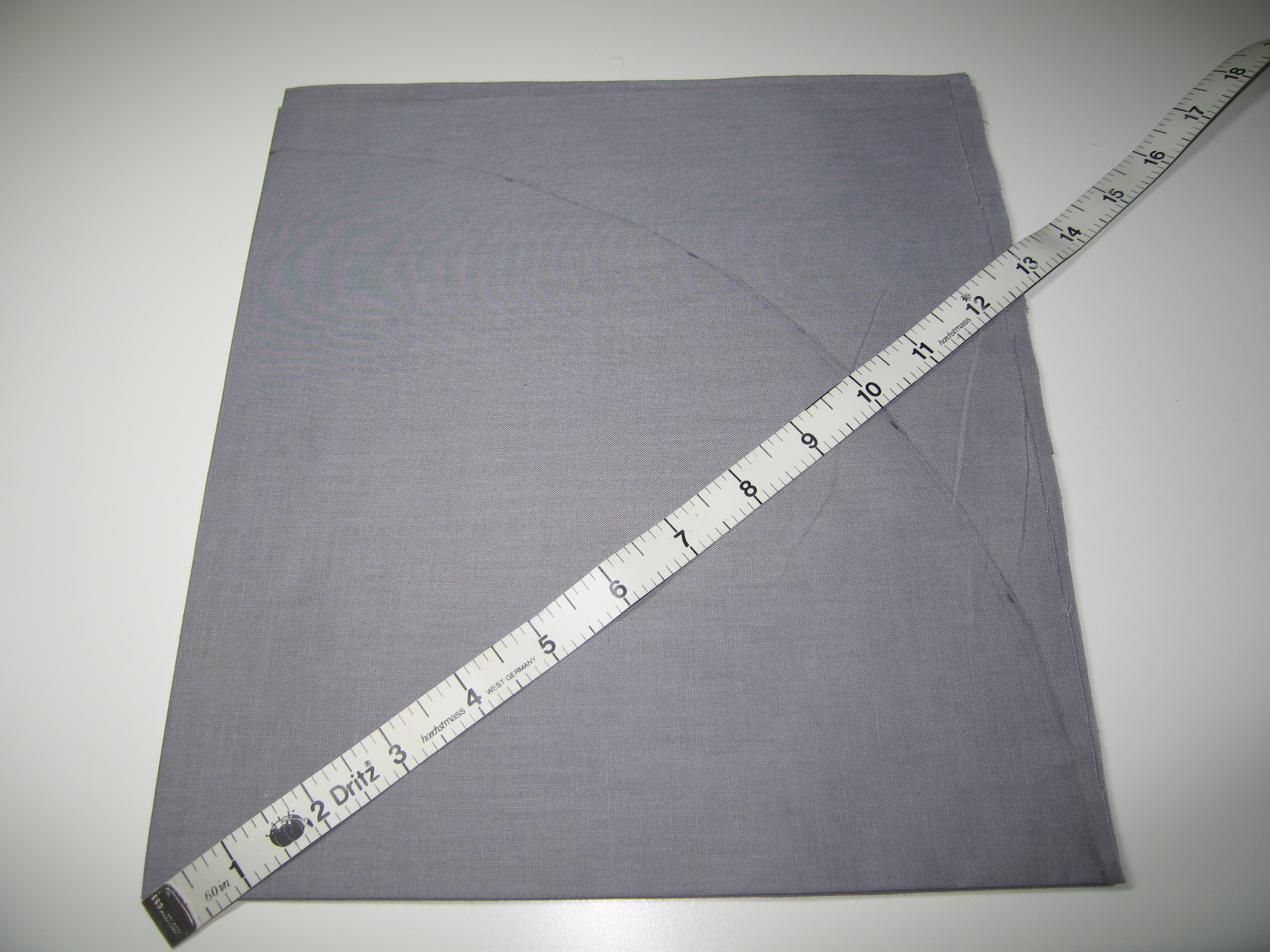 - With the beginning of your tape measure firmly fixed on the corner of the single fold, mark out the radius along the cloth. The more marks you make, the more accurate your circle will be. Also, be sure that the beginning of your tape measure is in the correct corner! You want all the loose edges away from the beginning of the tape measure.