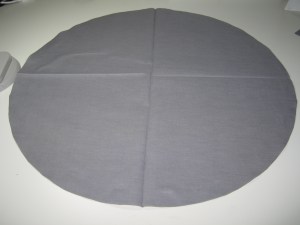 - Fold your cloth into quarters, making sure that each side is at least the length of the radius of your circle. This way you only need to draw out a nice arc that is a quarter of the circle, instead of drawing four nice, perfectly matched arcs to make a circle.