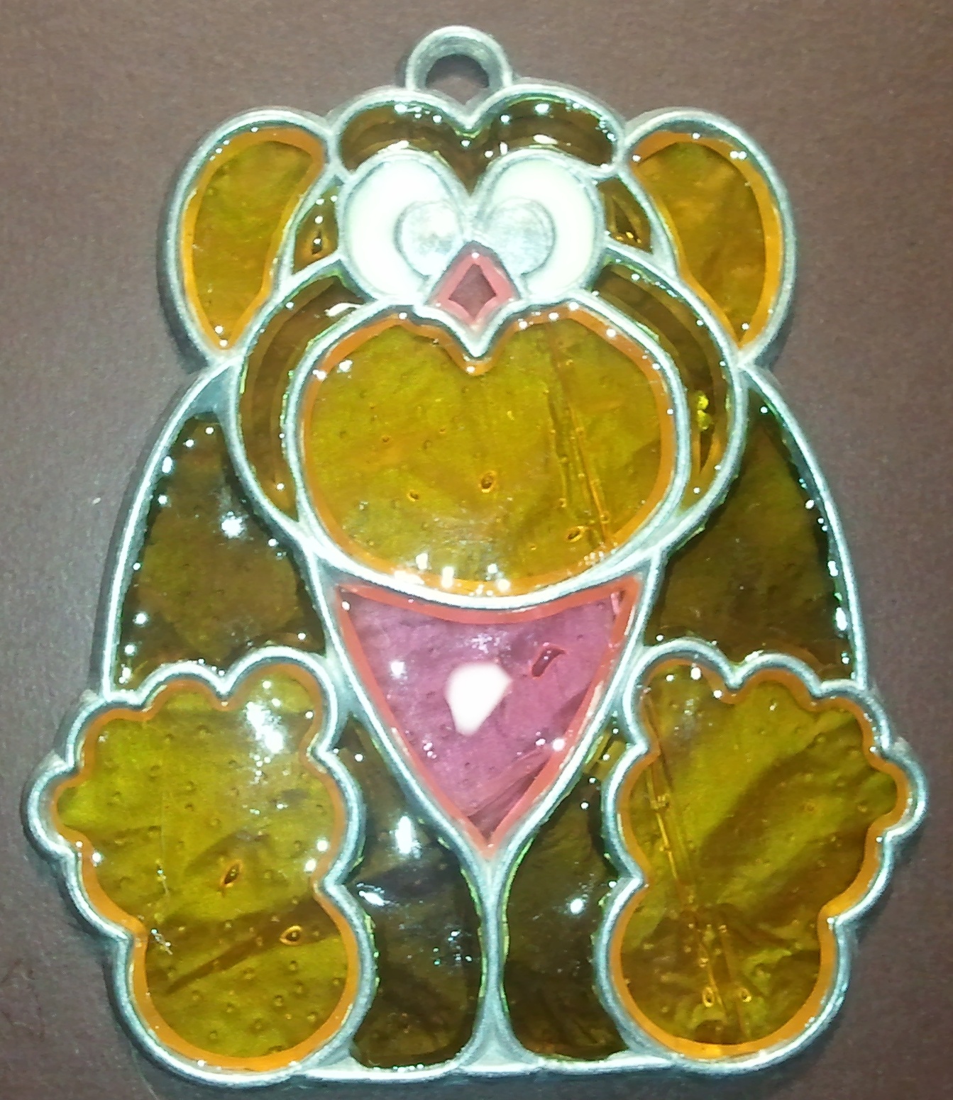 And here are my results.  You can see that there are some holes despite what I thought was a generous amount of beads, especially around the edges of the frame.  There was also a weird hole in the right foot.  So, they weren’t kidding.  You really need to pile in the beads.  The chest region came out nicely filled, but a bit lumpy.  The whole thing was rather lumpy.  The instructions in the back say that it should be a smooth, glass-like finish.  Well, it was definitely smooth, and I guess it would be glass-like if you were the worst glass-blower in history.  This was after 25 minutes in the oven too, the upper limit of their suggested baking time.