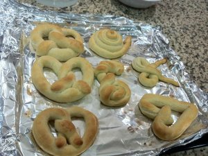 Anyway, we got a new batch of kids and one of the younger ones was taking home ec as an elective and told me about how they made pretzels in class and how she wanted to do it again, because another student, or possibly the teacher, got to do all the interesting parts and she didn’t get to do much. We didn’t have another kit, but pretzels are just another type of bread and my mom and I are both decent bakers. I figured I could put something together where they could play with a yeast dough.