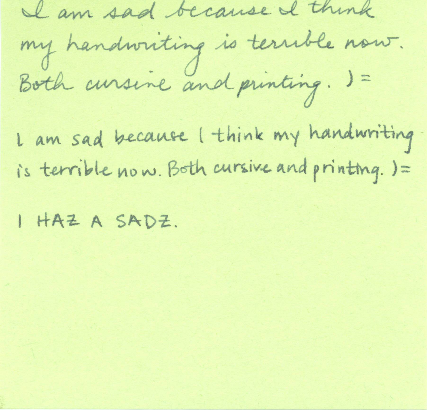 Recall how I said that I would just be going through all the hands in my calligraphy book? Well, it turns out that I never opened it after writing the first post. I dug it out of my closet. I dug out my sketch pad that I had been using to practice my calligraphy. I even dug out my calligraphy pens. But that was the end of it. They just sat on my desk for months. At first, I was just too busy during the beginning to really put much effort into practicing all the different hands. Then as time went on, I had some serious motivation issues and then finally I was just lazy. I still continued to whine about my handwriting though.
