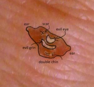 But…I was actually unable to punch all the things. Why? Because when I went to punch all the things, I realized that there was an evil cyclops monster face (ECMF) on my finger on an area I would need if I were to indeed punch all the things.