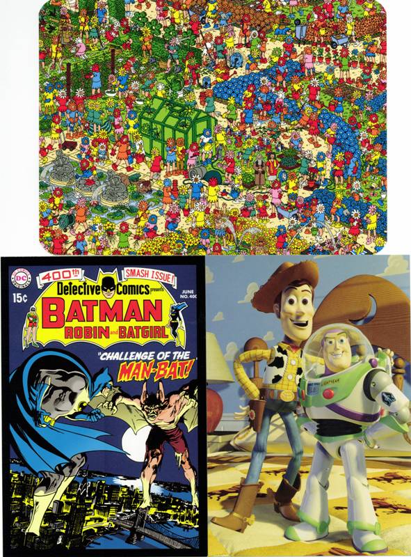 These three postcards are on their way to Texas via swap-bot, particularly for this swap. The recipient didn’t have anything specific in their profile about postcards so I sent a mix of things. She said she had young nieces, so I thought they might like a Toy Story postcard and a Where’s Waldo postcard. I suppose her fiancé might like the Batman one. I included a short note, as well.