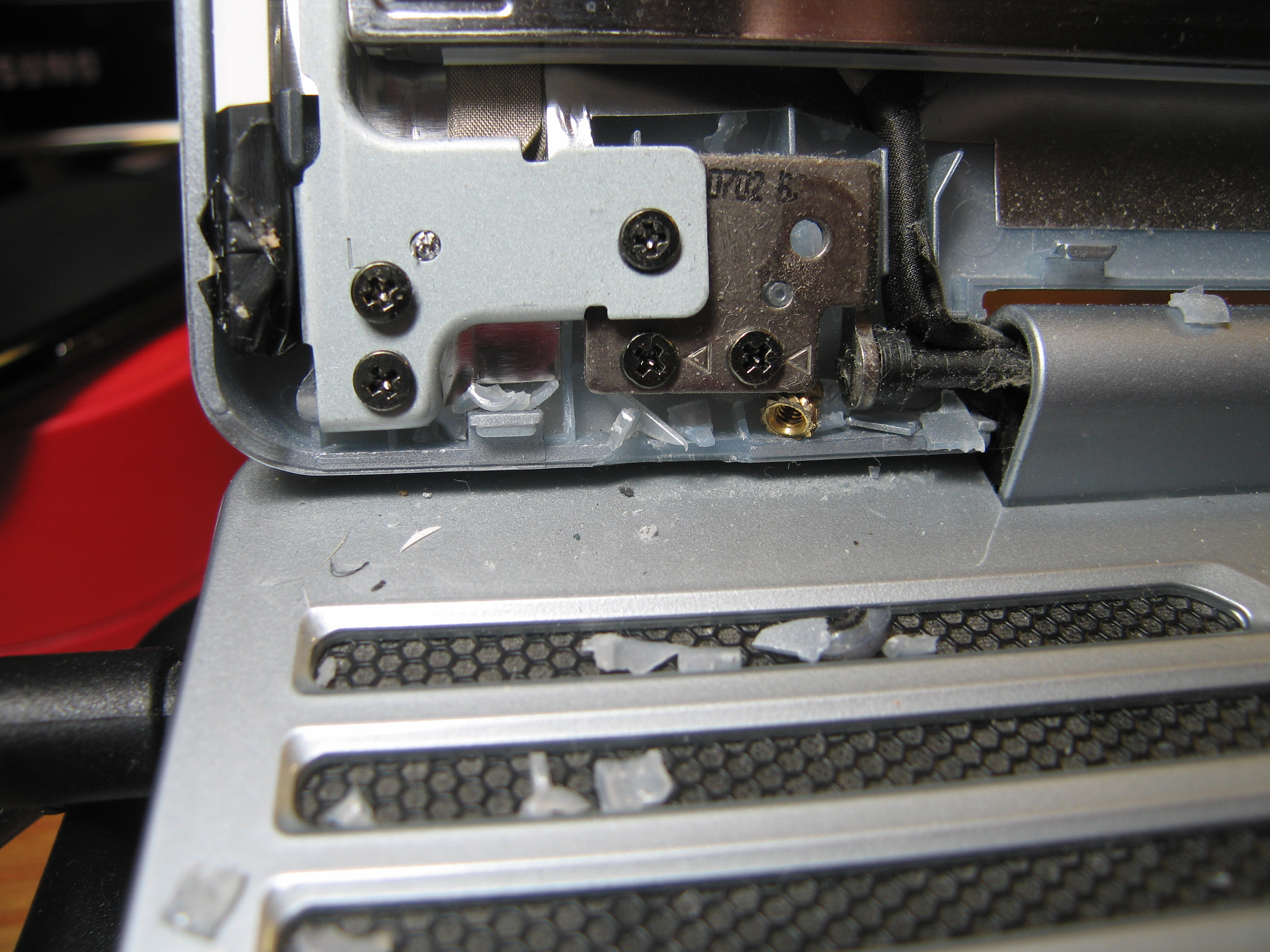 Do you not see how stupid their hinge mount design was? The hinges screw into some very flimsy plastic attached to the front cover. Do you not see how much of that plastic has crumbled away? The plastic was obviously not up to the job of dealing with a laptop hinge.