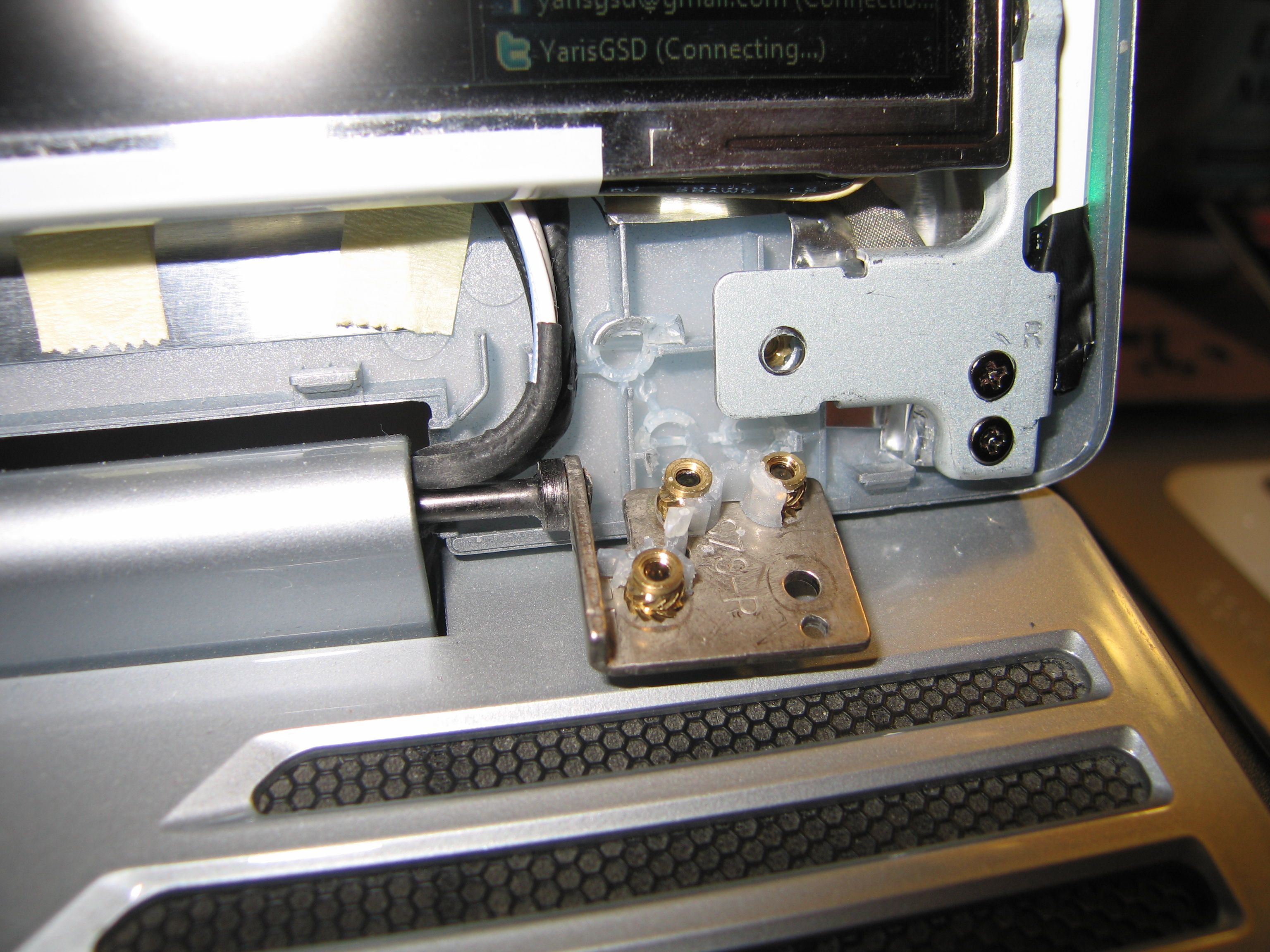 Well, after dealing with maer’s hinge earlier last week, I finally decided to order parts from Dell to fix LeeEv’s hinges. Yes, that’s right. Dell. Alienware was bought out by Dell. It’s not really a huge deal, except that I am firmly convinced that Dell has thrown out all the records for 2009. I, lucky person that I am, bought LeeEv in June of 2009. Dell took over Alienware in September. The support issue for these pre-Dell Alienwares is murky. Both sites say to go to Dell, but more often than not, I find that Dell reps have no idea what LeeEv looks like or what parts he needs.