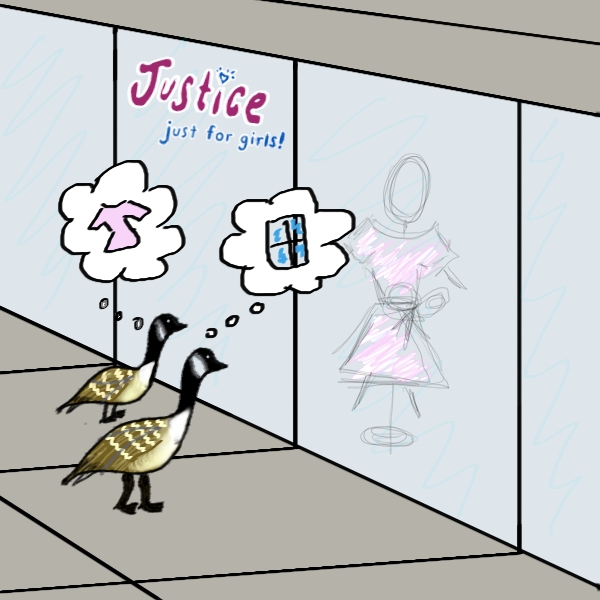Yes, yes they are.  And I know what they were thinking too.  The goose in front was a male goose and he was totally looking for windows, not realizing that he was standing in front of a fashionable girl’s clothing store.  The other goose, his wife, was looking for a pink dress for their daughter.  That was totally what they were thinking.  I know.