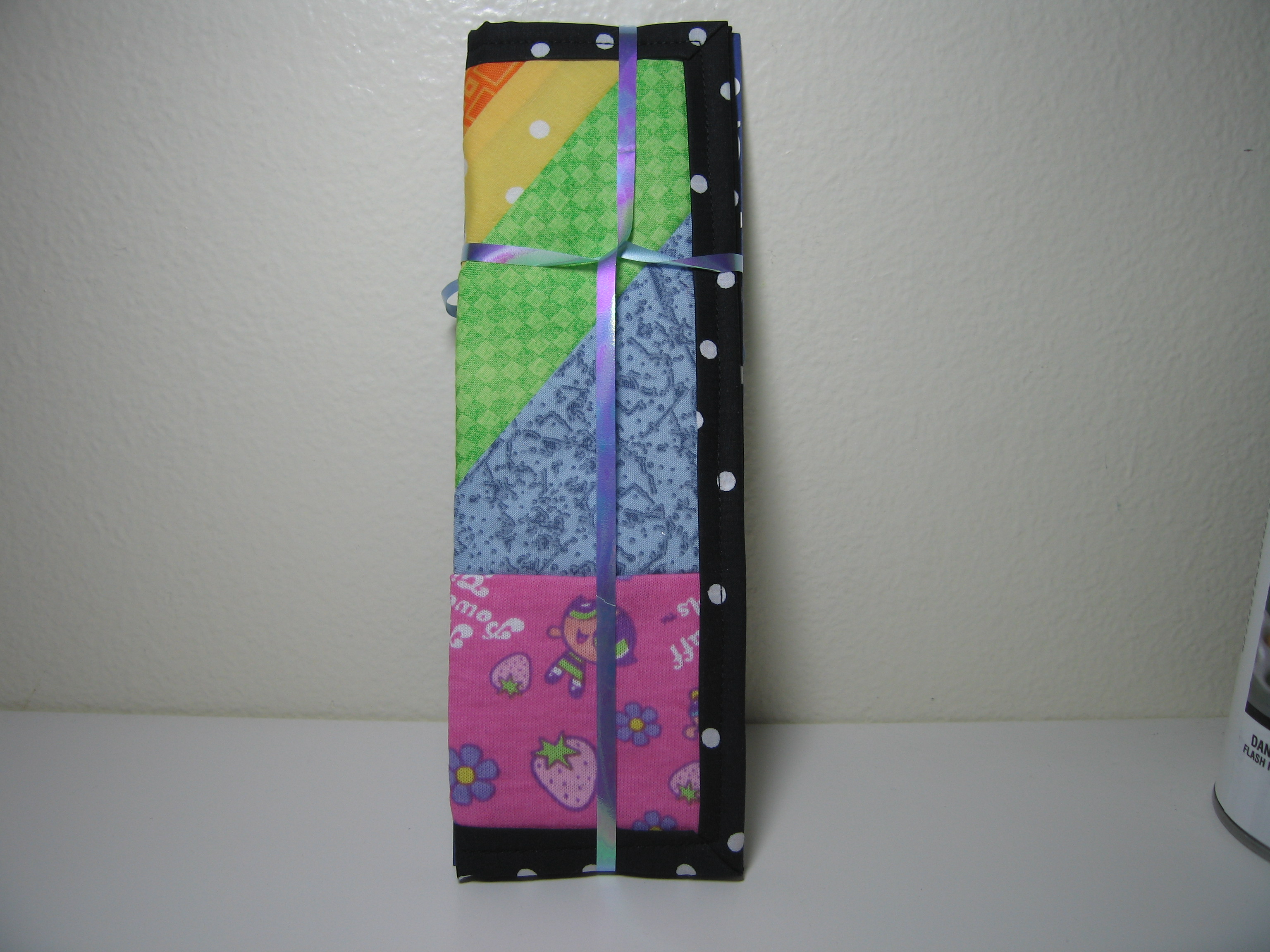 I was quite pleased with how the mug rug turned out.  Definitely gift caliber.  I decided to pair that with a simple card with unusual proportions and text alignment.  As it turned out, they went perfectly together because the mug rug was 6″x9″ and the card was 6″x9″ fully opened.  I hadn’t really planned it that way.  I mean, I wanted a card that was long and skinny, but I hadn’t specifically thought about the proportions.  I just decided on a certain size and it ended up being the same size as the mug rug.