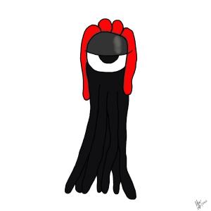 Mrs. Cabbage. She has this red, ribbony thing orbiting around her and it fragments in proportion to the amount of awareness the eye-monster has of her son.