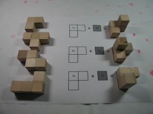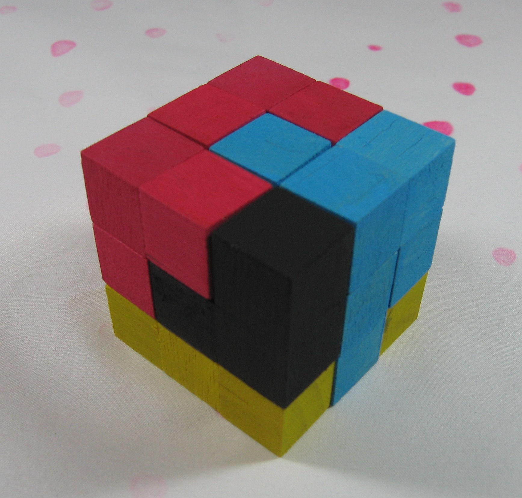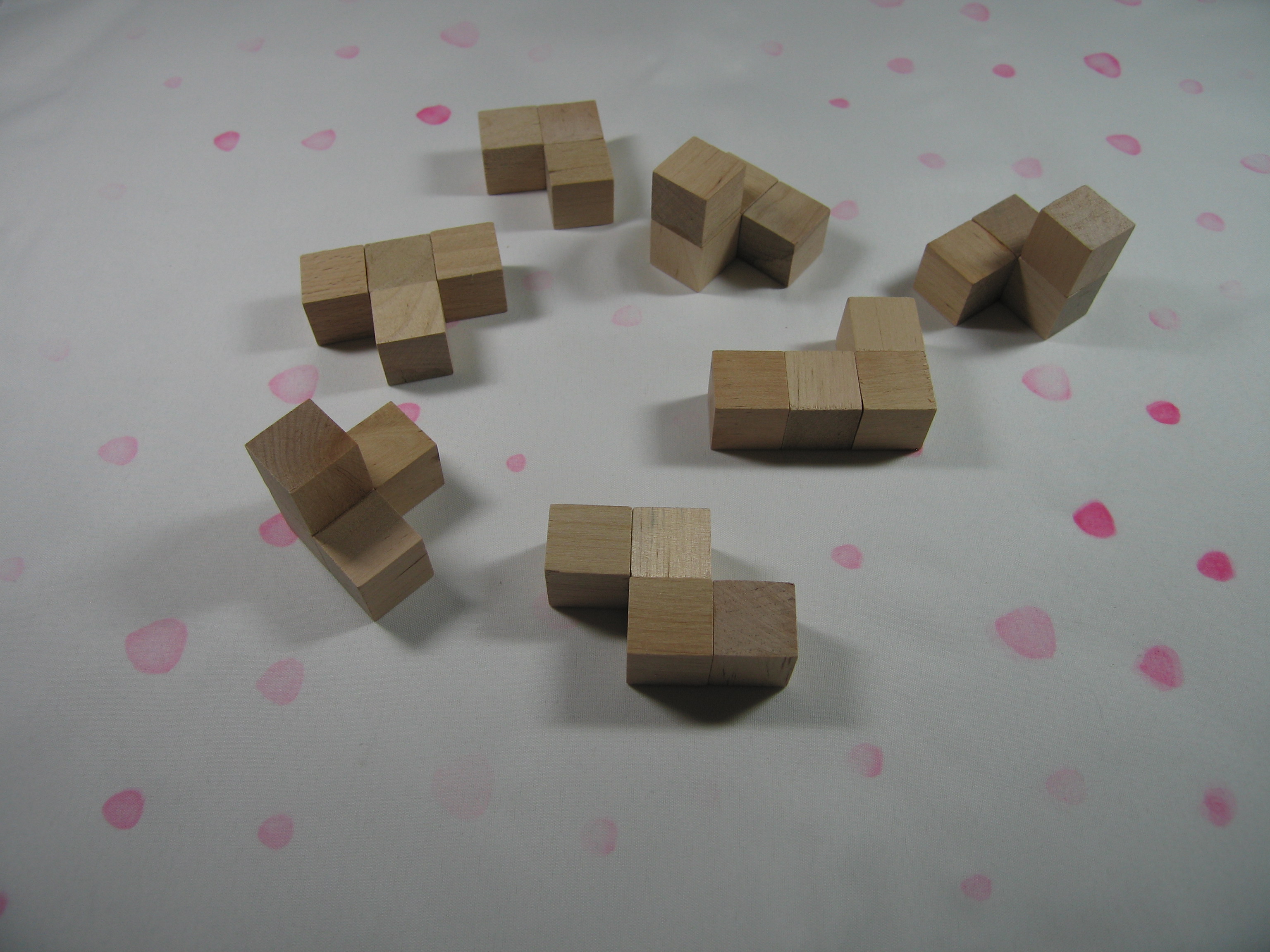 For my cube puzzle, I opted to make an actual Soma cube, in case any of the kids making these things wanted to check out Winning Ways for your Mathematical Plays at a later date and read up on the analysis of the Soma cube.