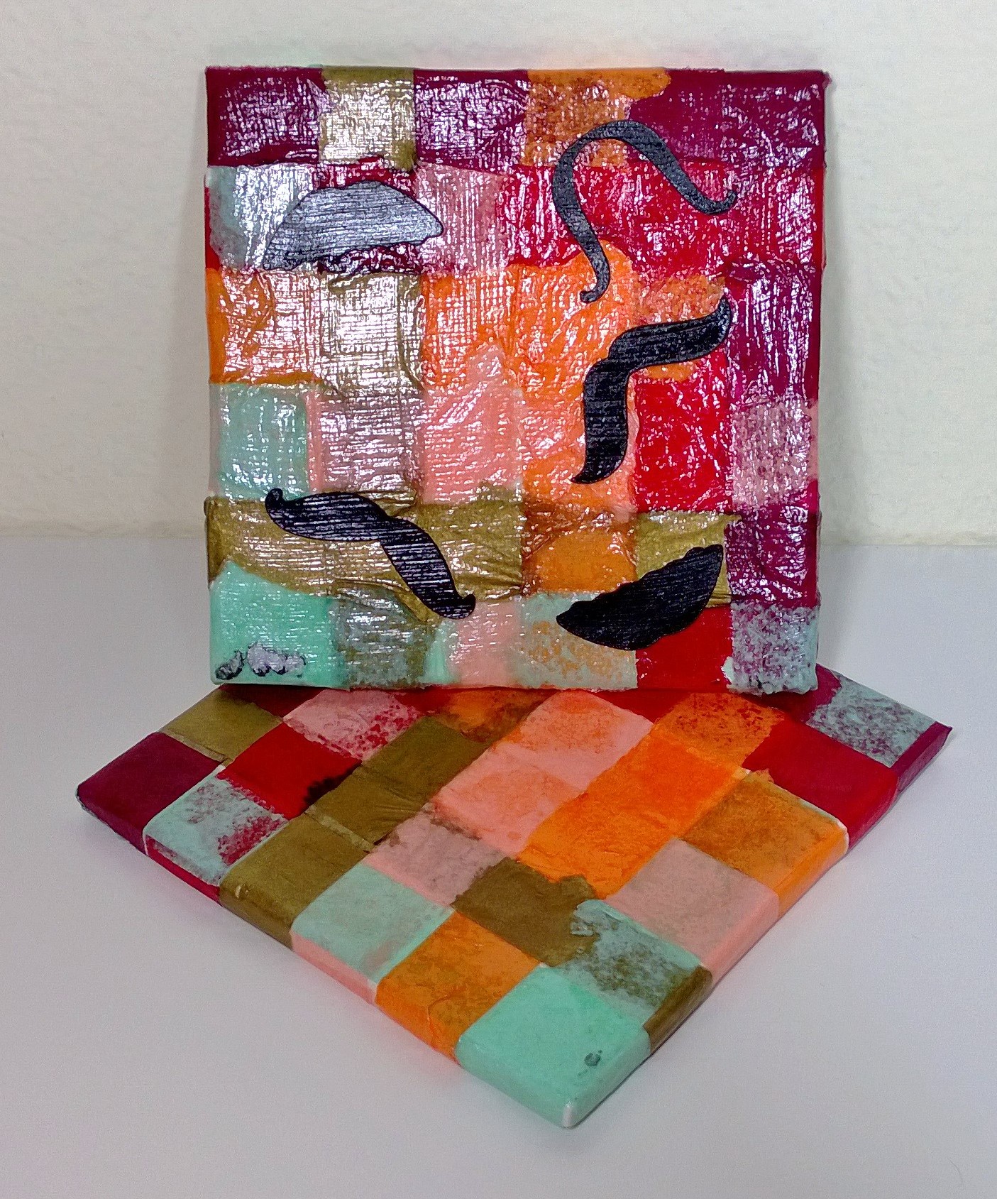 But anyway, I finished up that first coaster.  I thought I’d put some mustaches on it.  And there you go.