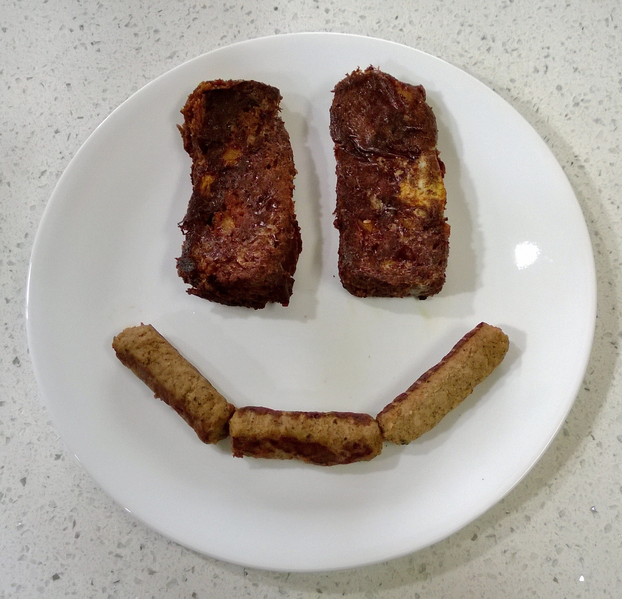 Ok, I didn’t make porridge. I really like rice porridge though. But anyway, I made persimmon nut bread recently and then made French toast with some left over slices. It’s the French toast and accompanying sausage links that are happy to see you.