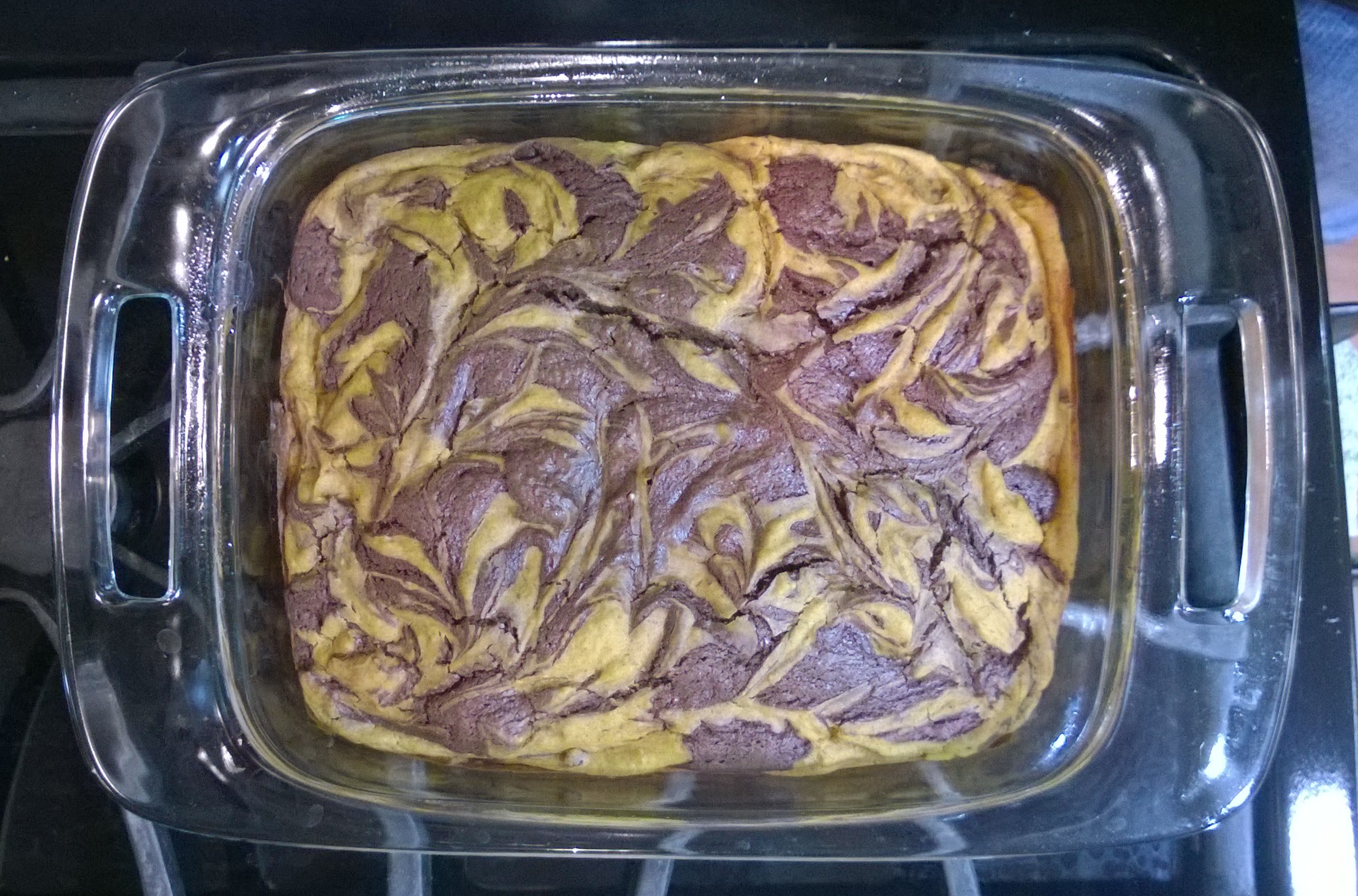 In the end, I did change up the recipe because 1) I didn’t want to make a 9×13 pan of brownies every time, 2) I think the pumpkin:brownie ratio could have been bigger, 3) I normally have semi-sweet chocolate on hand but not bittersweet, and 4) I almost never have all spice.