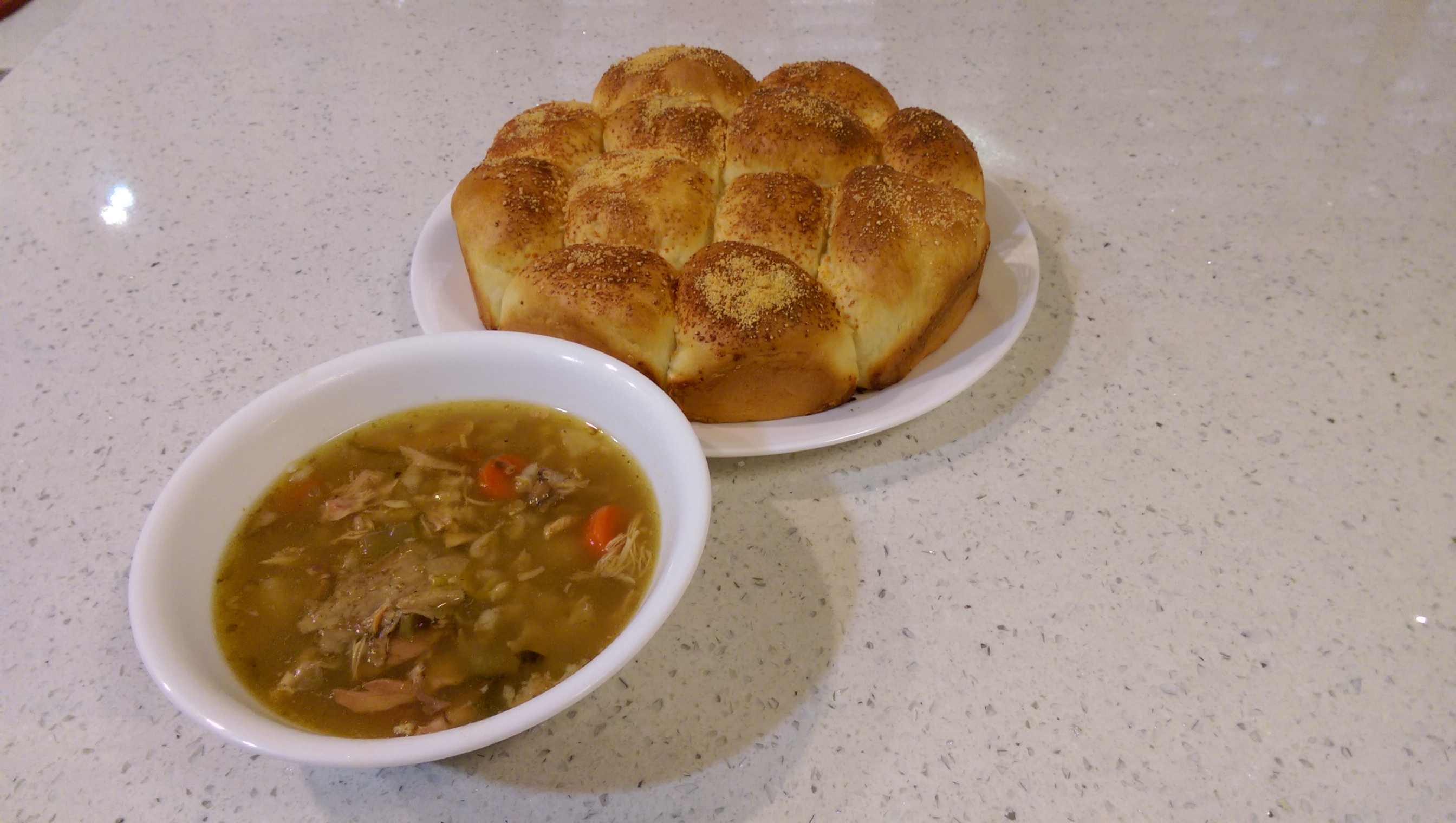 Oh, and I also tried my hand at making dinner rolls. I used this recipe (proofing the yeast first because I used dry active) and just sprinkled some parm on top.