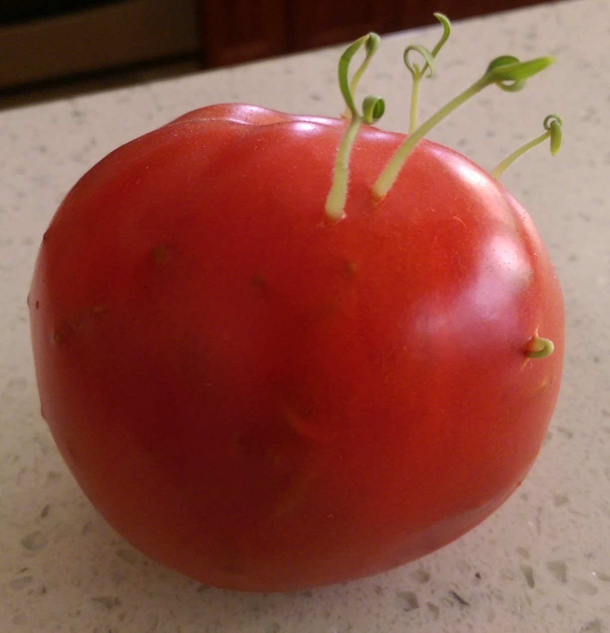 In other news, I’ve never had a tomato sprout before. I always though the next natural step in the process was just for the tomato to mold up and rot.