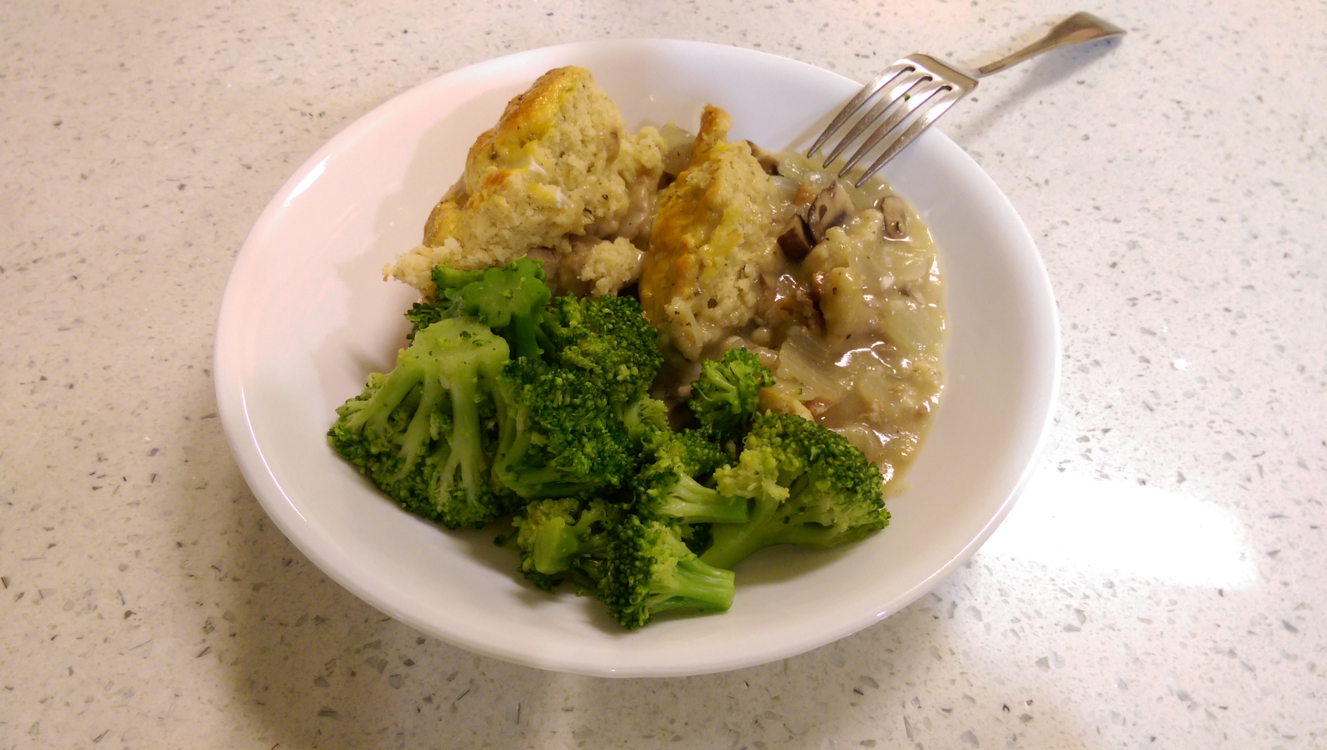 I like throwing together cobblers when I have extra fruit to get rid of. But the other day, I happened across a Sorted Food recipe for chicken and mushroom cobbler. A savory cobbler. Had to try it.