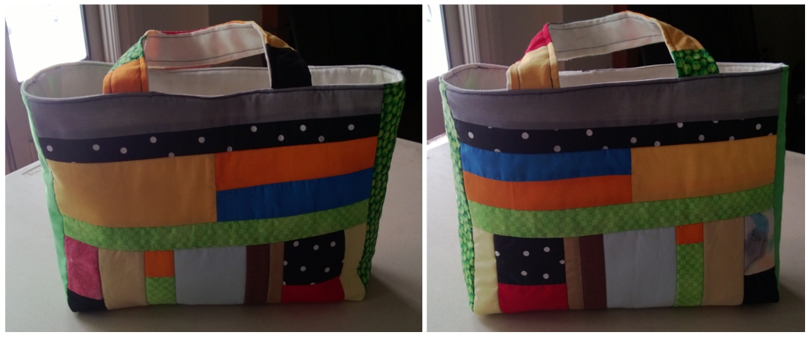 I will let you know that my finished bag is about 8″x11″x3″ and it took me about six hours to complete. At least half of that time was trying to figure out which scraps I wanted to use and then cutting them to size and then arranging them to my satisfaction and also lots of ironing. All that and it still didn’t use up nearly as much scrap cloth as I was hoping it would. So, now I’m hoping the rest of the girls will make a sizable dent in my scrap pile when they make their bags.