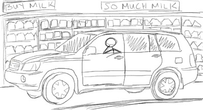 So, you drive into the market that only sells dairy products…and then what? I imagine it’s like a full service gas station, which I dislike with intensity (I’m glaring at you right now, Oregon and New Jersey). Maybe there will be an old timey ding as you drive over the trip wire and an attendant will come out and help you. Then you can roll down your windows, and I suspect the conversation would go something like this: